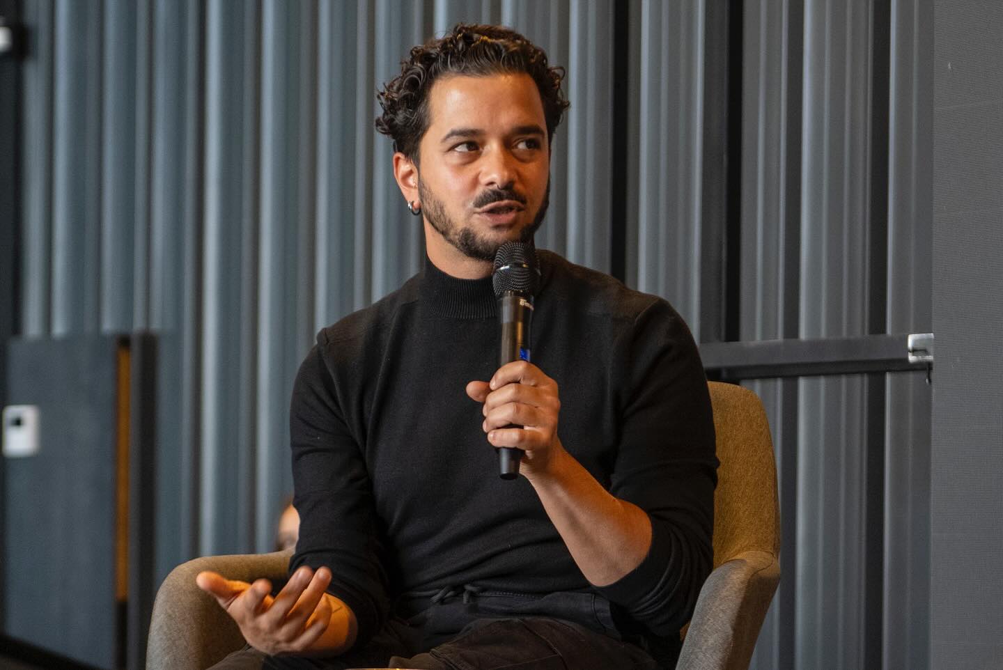 The discussion reflected on the role of art in exploring identity, belonging, and lived experience, unfolding through Gabris’s personal story and artistic practice. Drawing from his own journey — growing up without parents, facing prejudice as a member of the Roma community, and building a life beyond Slovakia — he spoke about how resilience and empathy shape his work.