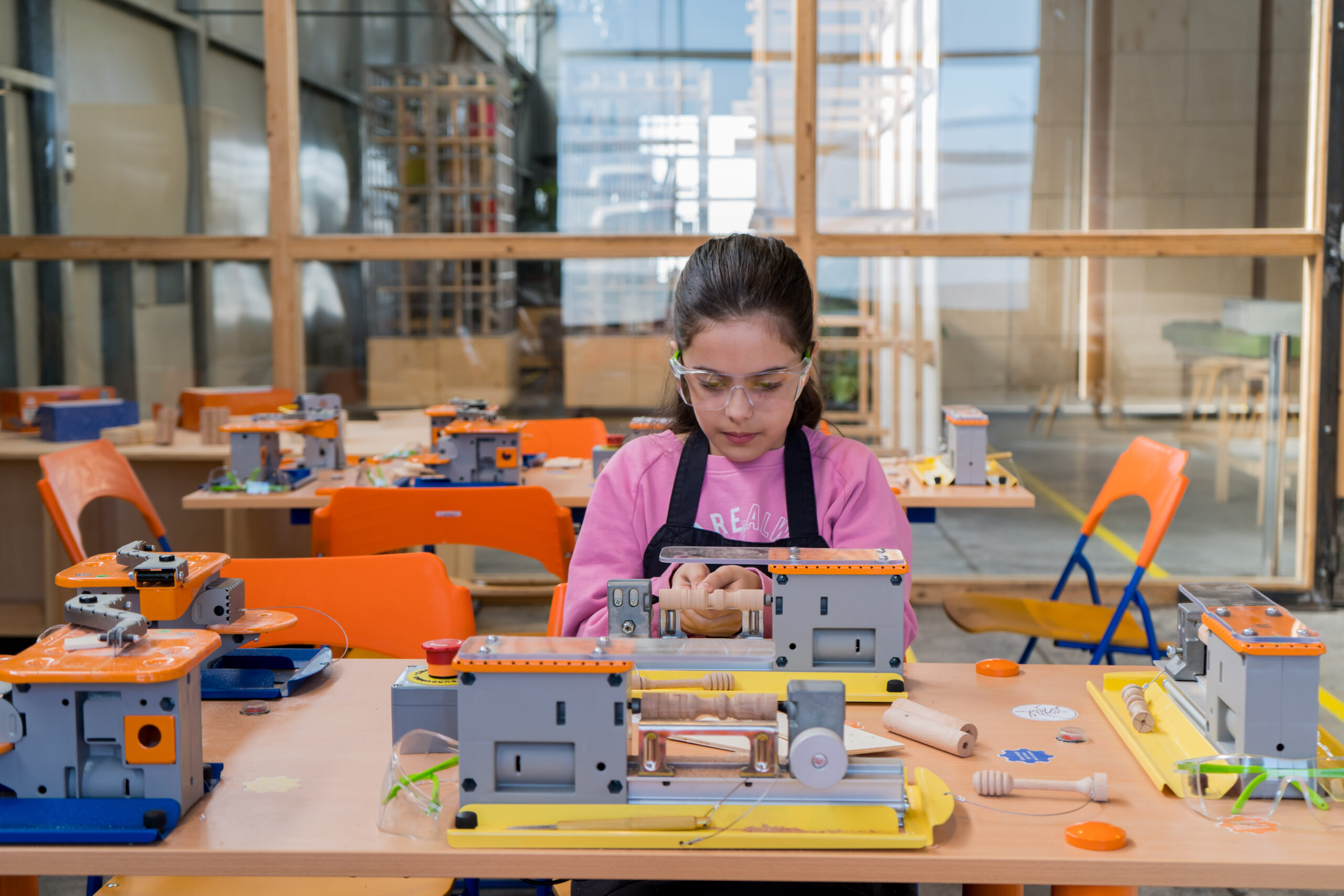 This program introduces a different approach to learning, where children will have the opportunity to work directly with professional wood-processing equipment certified according to European safety standards for use by children.